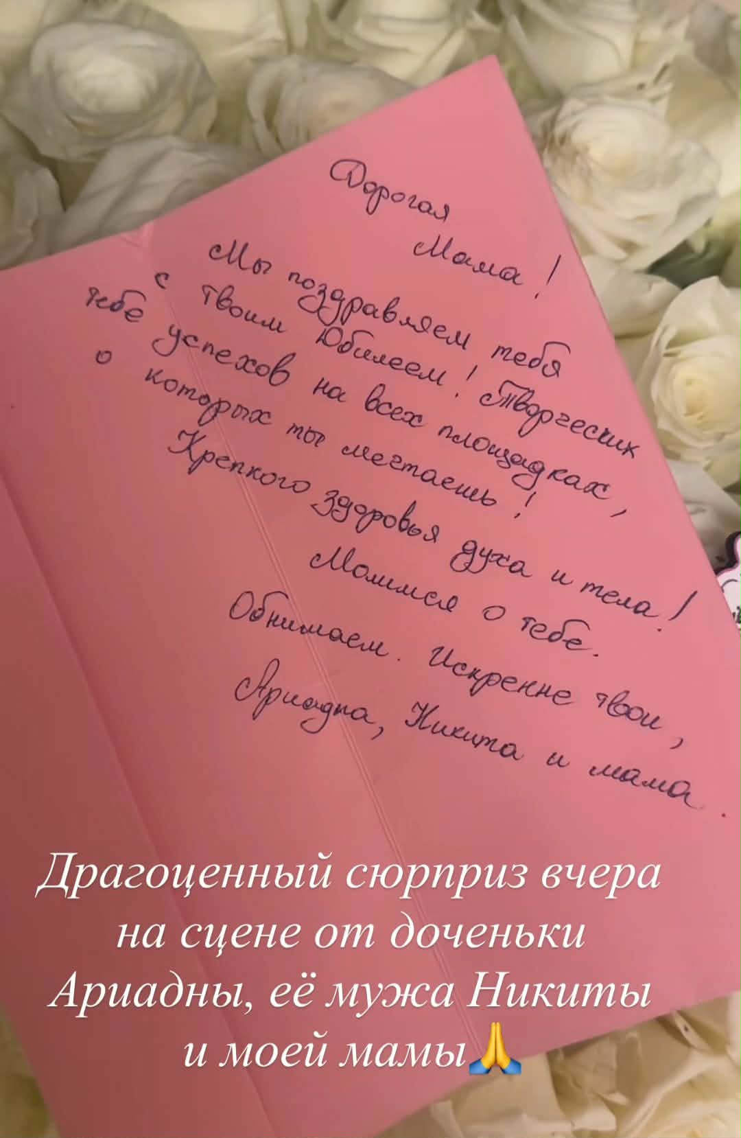 Вот и отгремел юбилей Волочковой! 50-летняя балерина всея Руси купалась в лучах славы, принимая подарки от поклонников и представителей шоу-бизнеса. Дочь и мать Волочковой поздравили балерину в письменном виде, прислав ей букет цветов. Поклонники Волочковой обратили особое внимание на одну строчку в письме дочери Анастасии.