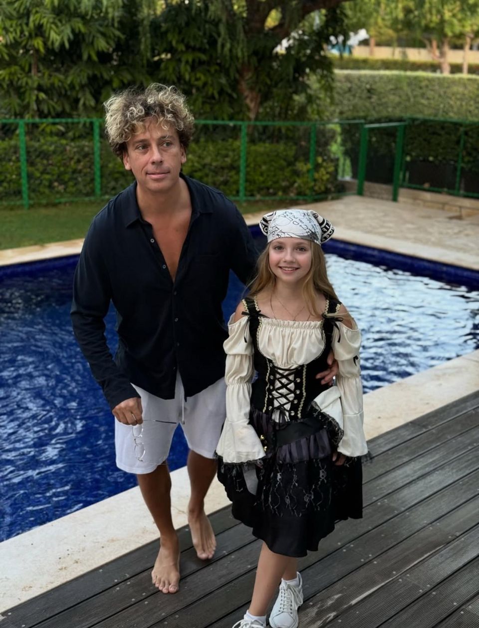 Максим Галкин выложил в соцсетях снимки, на которых запечатлена его 12-летняя дочь Лиза, готовящаяся к празднованию Хэллоуина. Девочка выбрала необычный костюм с пиратскими элементами: платье с корсетом и изображением черепа, которое она дополнила банданой и белыми кроссовками — интересным сочетанием традиционного образа с современными аксессуарами.