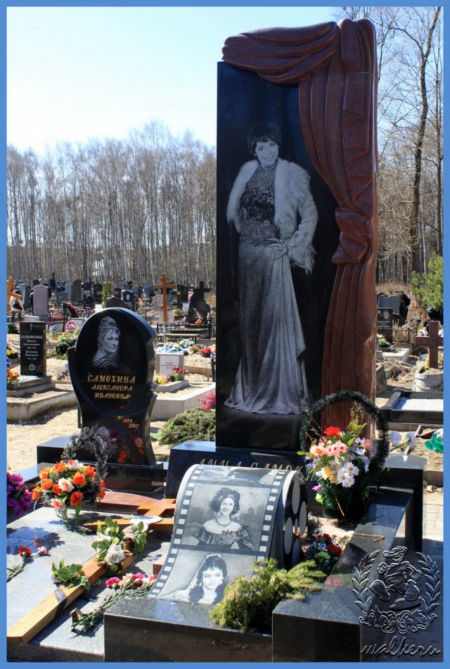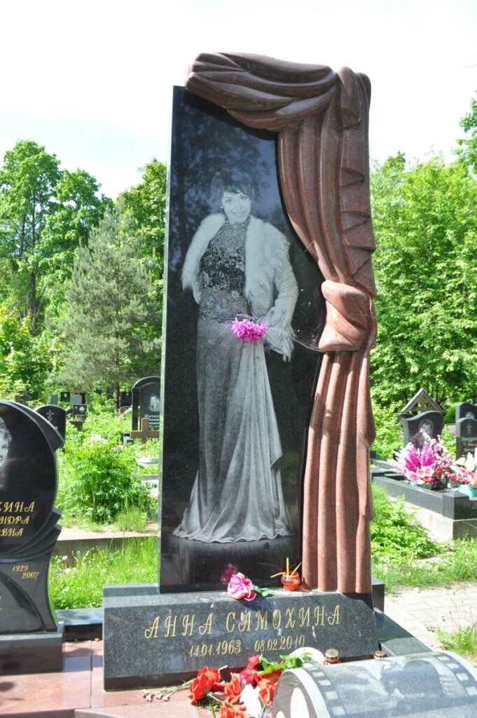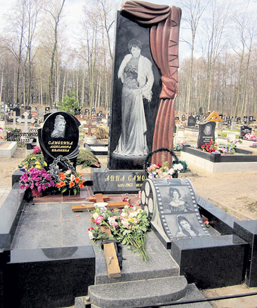 Красавицы-актрисы А. Самохиной нет на этом свете уже пятнадцать лет, а её пристанище всё так же заваливают цветами. Стоит указать, что, несмотря на волю самой Анны, на её могиле красуется высокая стела, на которой она запечатлена в длинном вечернем платье.